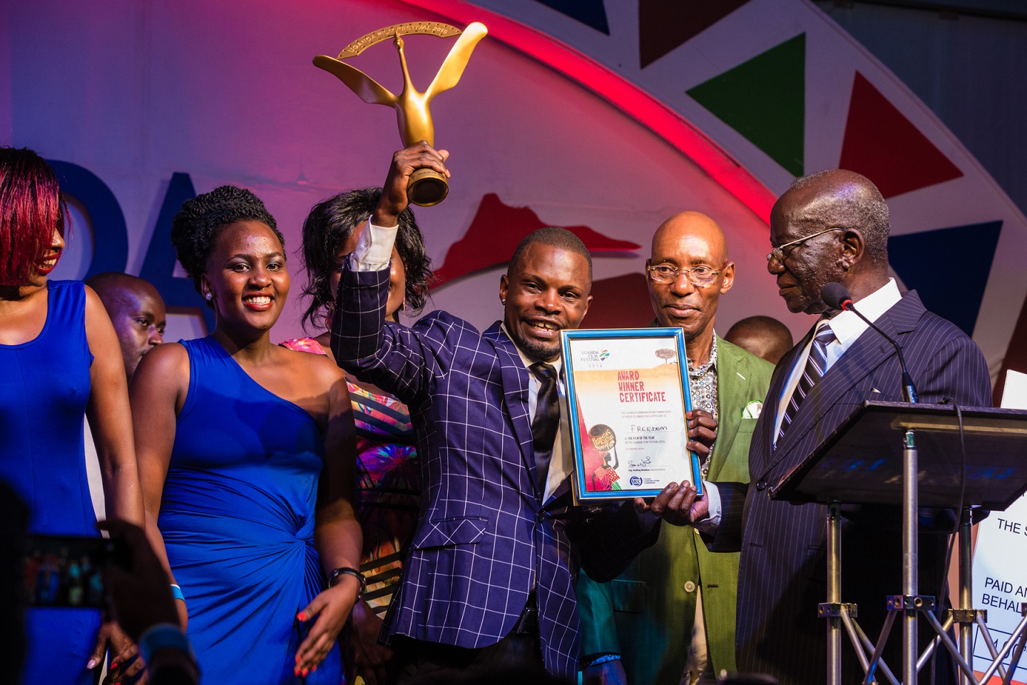 The festival week begins with an opening ceremony and climaxes into the Awards Gala night in Kampala where fifteen awards are presented in front of an invited audience of between 500-700 guests. The awards are selected by a panel of independent judges and are an essential way to honour local filmmakers and an encouragement to others. All the awards receive trophies and prizes. The prizes range from fully paid trips to international festivals of their choice, or cash prizes.