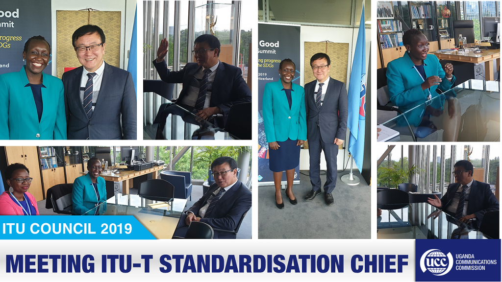 GENEVA – The Director Engineering and Communications Infrastructure at the Uganda Communications Commission, Ms Irene Kaggwa Sewankambo has this morning had a meeting with the Director of the ITU Telecommunication Standardisation Bureau, Dr Chaesub Lee on the 5th floor of the Montbrillant Building. A delegation headed by the Uganda Communications Commission Executive Director, Mr Godfrey Mutabazi is in Geneva, Switzerland participating in the ITU Council 2019.