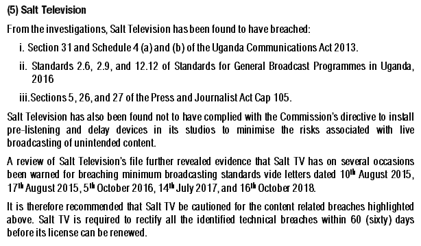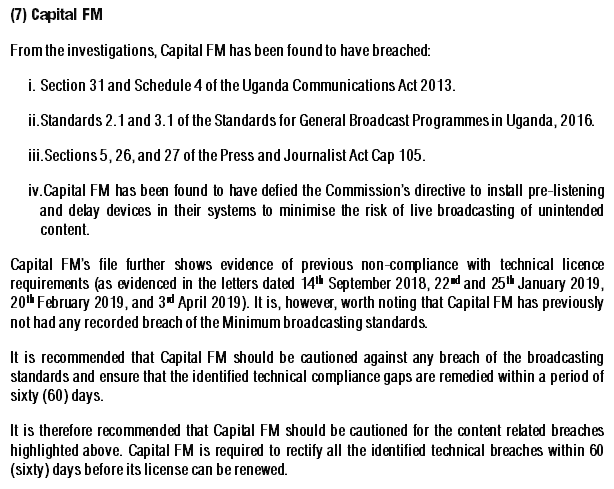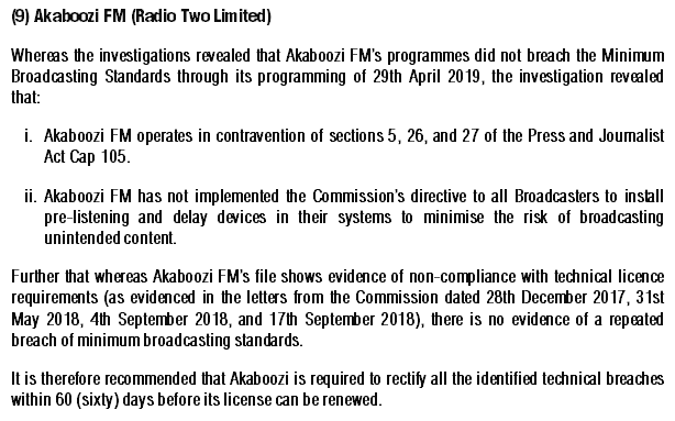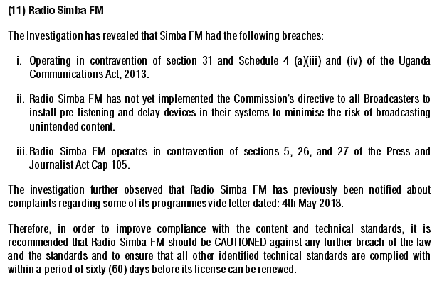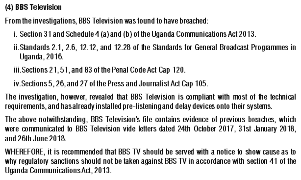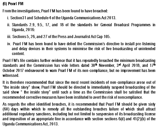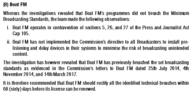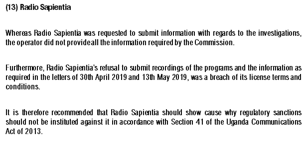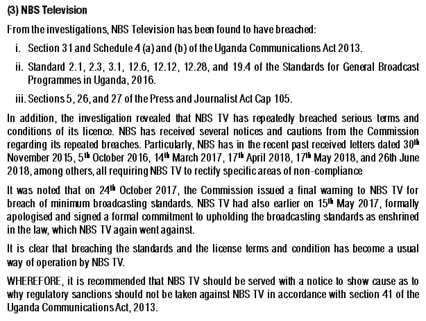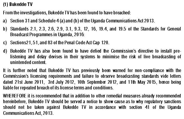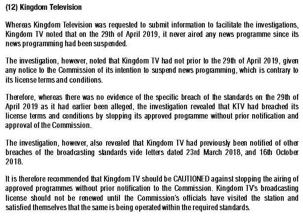 With regards to the thirteen (13) broadcasters that were specifically investigated, it is recommended as follows: