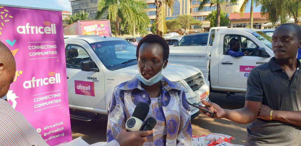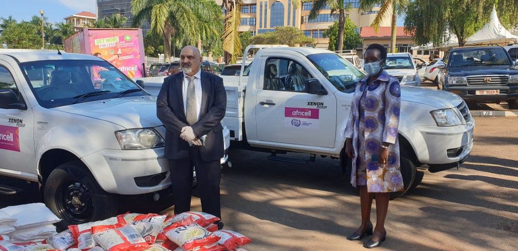 The Ministry of Health tweeted: “On behalf of the National Taskforce, Diana Atwiine received a donation from Africell of 3 brand new Tata Xenon pickups, 1 tonne of posho, 1 tonne of rice and 1 tonne of soya beans to support the COVID-19 response activities.”
