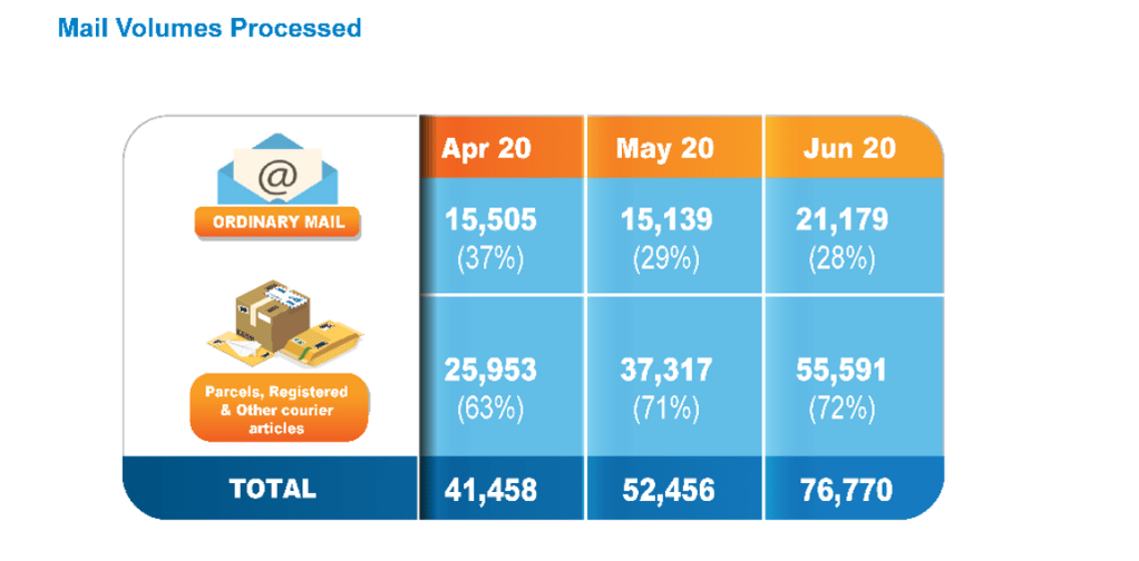 “In Uganda, international mail and parcels reported the highest drops in volume in the month of April, and mail volumes as a whole contracted by 57% between 1Q20 (January – March) and 2Q20 (April – June),” says the report.