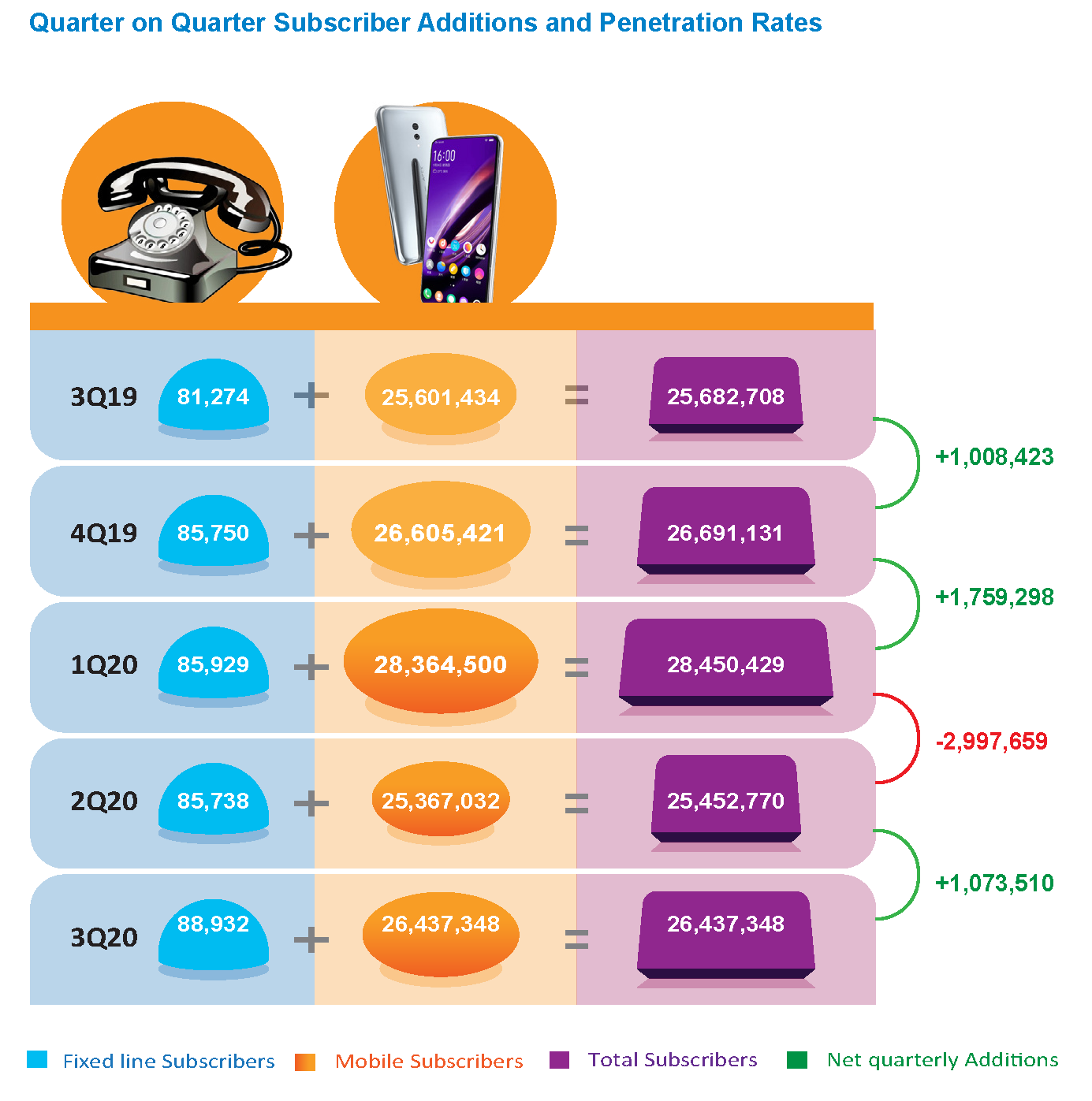 In the same vein, there were more than 1 million new mobile subscriptions in the months of July, August and September 2020 as the market topped 26.5 million fixed and cellular subscriptions, equaling the pre-COVID-19 subscriber count of December 2019.