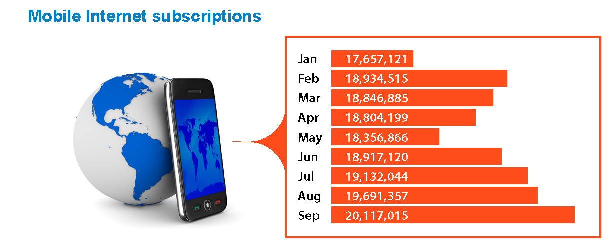 Having dropped from 28.4 million in the first quarter (January – March 2020) to 25.4 million in the second quarter (April to June 2020), mobile subscriptions recovered to record 26.5 million at the end of September 2020.