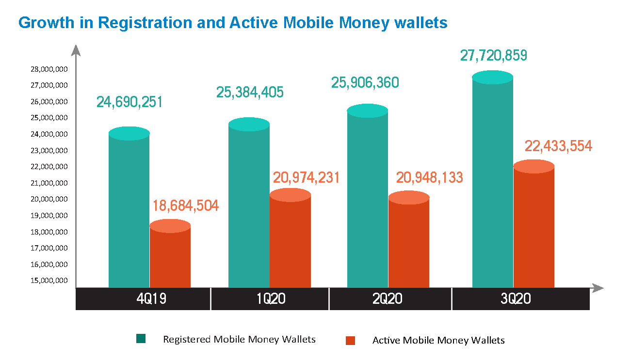 New subscriptions mainly led the growth in the period under review in contrast to reactivation-led growth witnessed in the period April-June 2020. This observation is significant given the number of first time mobile financial service users in the market.