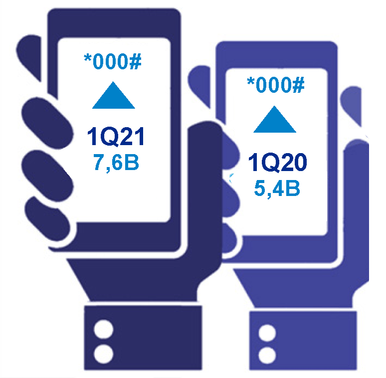 USSD sessions have been growing at an average of 10% between 1Q20 and 1Q21. 1Q21 posted 7.6 Billion USSD sessions in comparison to the 5.3 Billion USSD sessions posted in 1Q20.