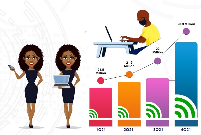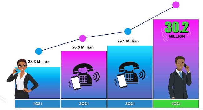 In terms of last mile voice connectivity, the quarter under review registered a 1.05 million jump in subscriptions, a 4% quarter-on- quarter growth and a 9% annual growth in the 12 months ending December 2021. Accordingly, both fixed and mobile subscriptions grew from 29.1 million in September to 30.2 million in December 2021, the report says.