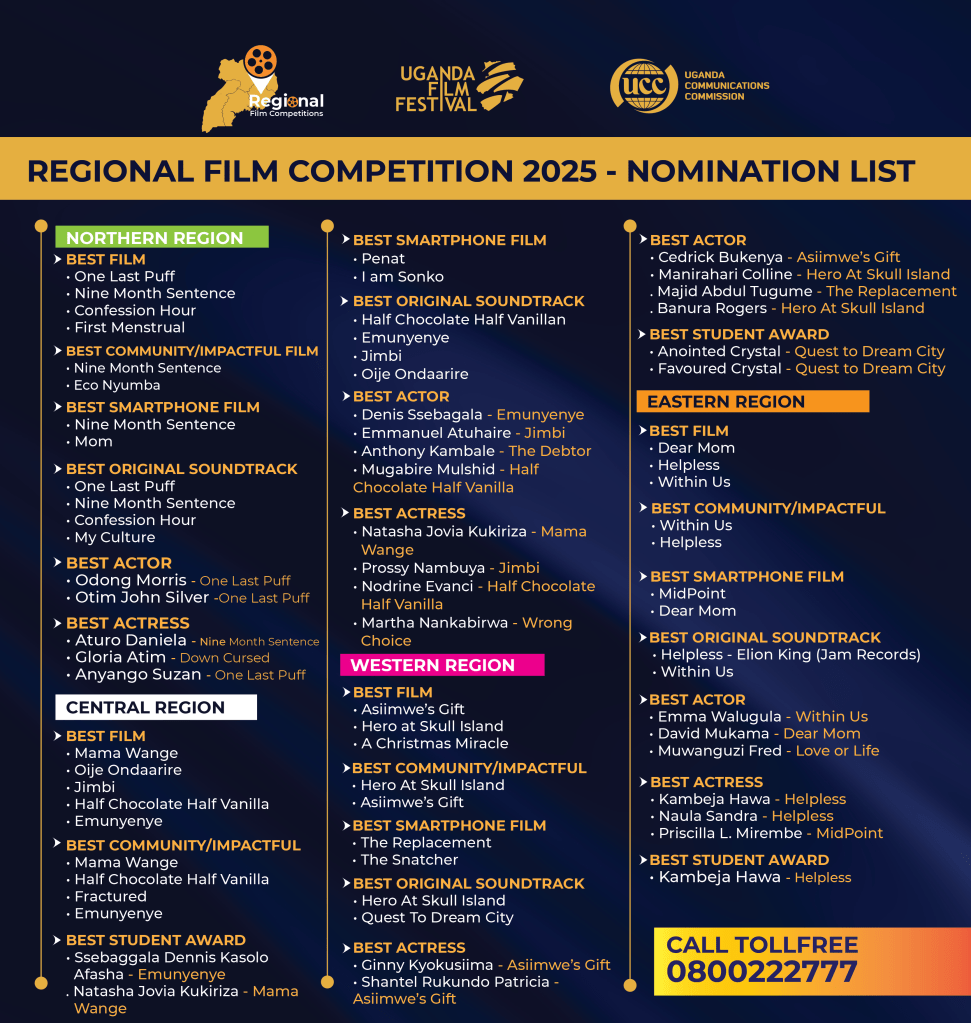 The Regional Film Competition is an initiative of the Uganda Communications Commission (UCC), designed to enhance the diversity of Uganda’s audiovisual content, empower upcountry filmmakers, expand audiences for local content, and cultivate business linkages at regional level.